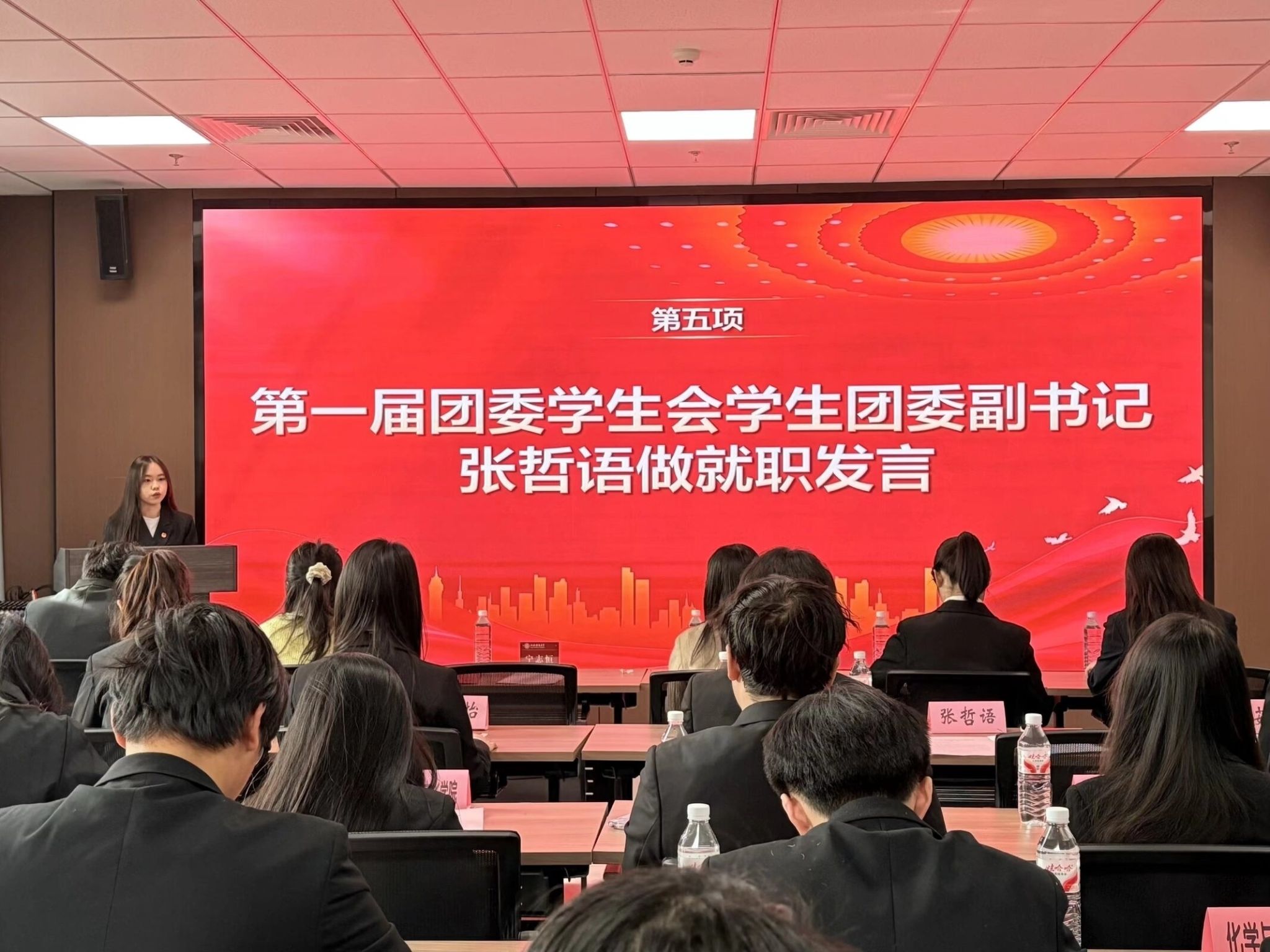 之后,第一届团委员工会主席团成员张哲语、高子茹依次做就职发言。她们汇报了员工会的工作规划,郑重承诺将始终秉持“全心全意为同学服务”的宗旨,凝聚团队力量,勇于开拓创新,以务实举措服务同学成长,为公司发展贡献力量。