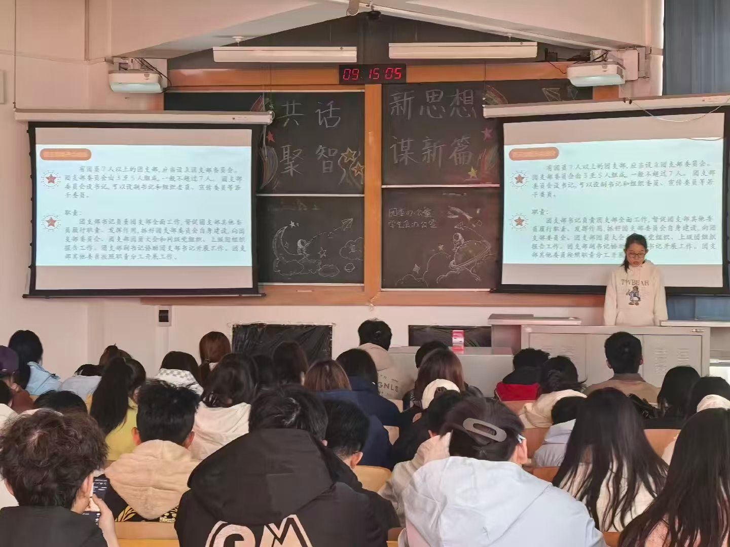 活动中,团办负责人张淼溪围绕团支部基本任务、团费收缴、推优流程、智慧团建系统操作及组织关系转接等内容展开介绍,帮助同学们初步了解支部建设与日常工作。随后,团办负责人连映慧从支部建设方法、对标定级细则等方面,详细解读了团支部建设与评选制度,引导大家要明确自身职责,主动参与支部活动,共同推动支部发展。