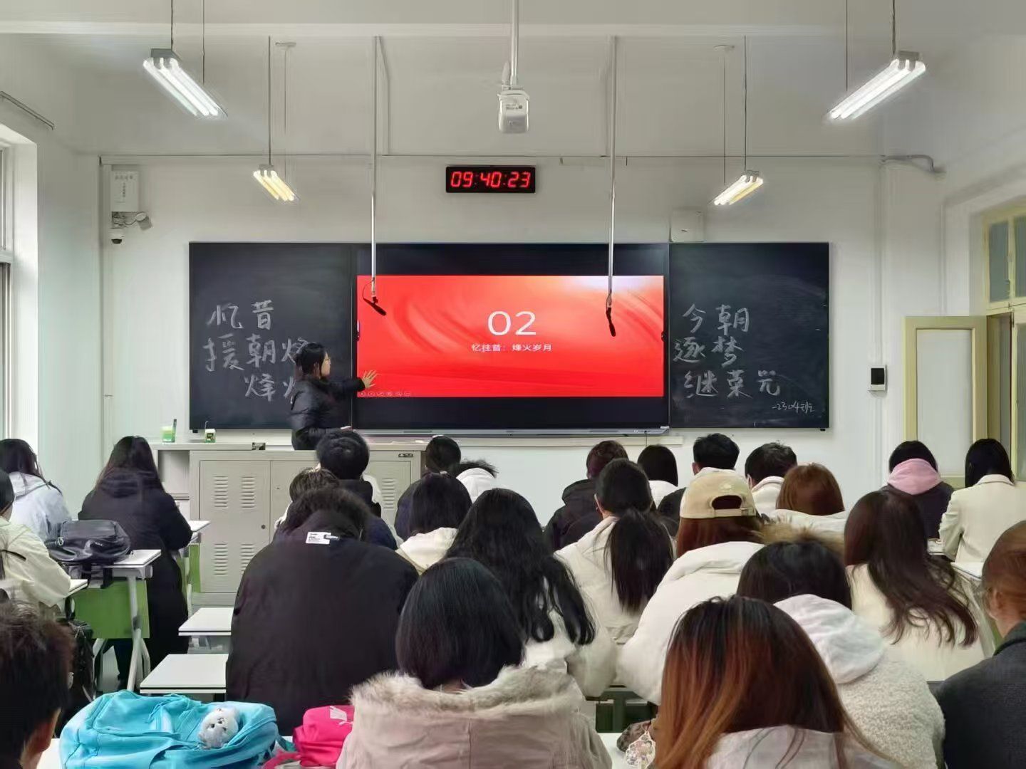 活动伊始,各团支部组织同学们集中观看抗美援朝主题纪录片《冰血长津湖》片段,学习《铭记伟大历史,推进伟大事业》文章,在光影与文字的交织中,大家深刻感受到那段艰苦卓绝的岁月,被志愿军将士不畏牺牲、保家卫国的崇高精神深深震撼。随后,各团支部相继开展战地家书诵读,并围绕“新时代青年如何传承抗美援朝精神”进行主题研讨,引导同学们将历史震撼转化为奋进动力,进一步坚定了传承红色基因、担当复兴使命的理想信念。