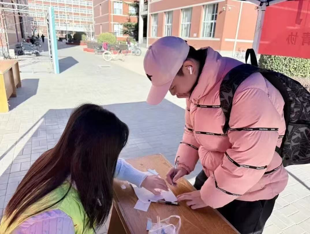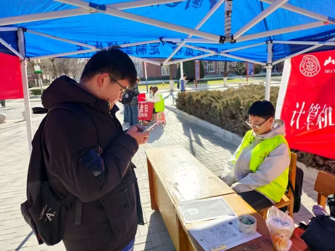 活动现场设置多个互动环节,让志愿服务热情在多元体验中持续升温。“志愿说说看”环节化作温暖的回忆纽带,参与者围聚在志愿摊位旁,畅谈志愿服务时的难忘经历,让奉献化作真实可感的喜悦;“二进制跳跳乐”巧妙融合专业知识和志愿理念,让理性思维浸润公益暖意,在趣味互动中传递志愿内涵;在“网络安全知识盲盒问答”环节中,同学们积极参与、从容作答,在轻松愉悦的氛围中将安全与互助的志愿意识深深植入心田。